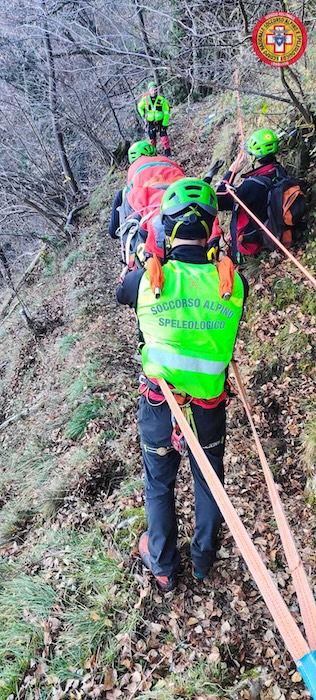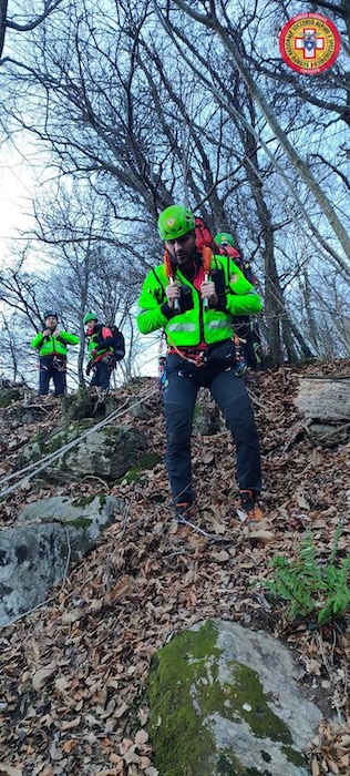 Le squadre hanno operato applicando tutte le procedure tipiche di un intervento reale: il raggiungimento del paziente, la prima valutazione sanitaria, l’arrivo del sanitario sul posto, le comunicazioni con la SOREU, l’imbarellamento, il recupero in contrappeso. A seguire, è cominciata la serie di calate – almeno una decina – con barella portantina. Nella parte finale, sono state predisposte delle funi guida che hanno permesso di affrontare traversi particolarmente disagevoli.