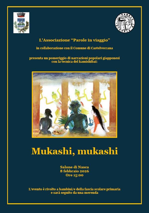 L’Associazione “Parole in viaggio“, in collaborazione con il Comune di Castelveccana, propone un appuntamento dedicato alla narrazione e alla tradizione orale giapponese, pensato per avvicinare i più piccoli al mondo delle storie attraverso un linguaggio semplice e coinvolgente.