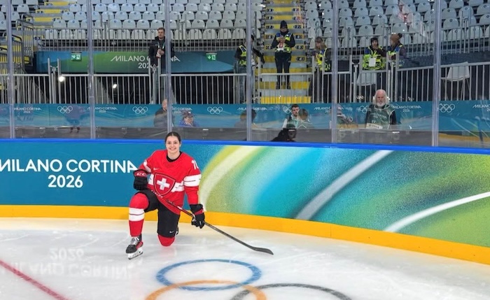 Lavena Ponte Tresa fa il tifo per Nicole Vallario, giovane giocatrice della nazionale svizzera di hockey su ghiaccio che partecipa alle Olimpiadi invernali di Milano Cortina.
