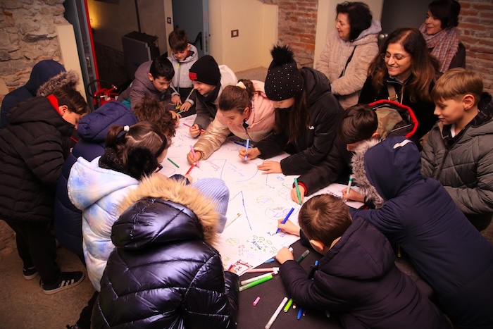 Al termine della mattinata, i bambini hanno realizzato uno striscione colorato di incoraggiamento per le atlete del Trofeo Binda, che sarà esposto il 15 marzo in occasione del traguardo volante di Olginasio, frazione di Besozzo.