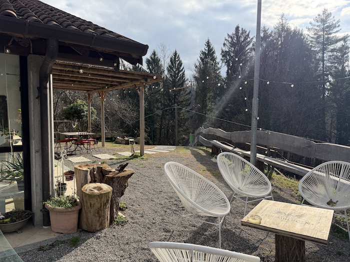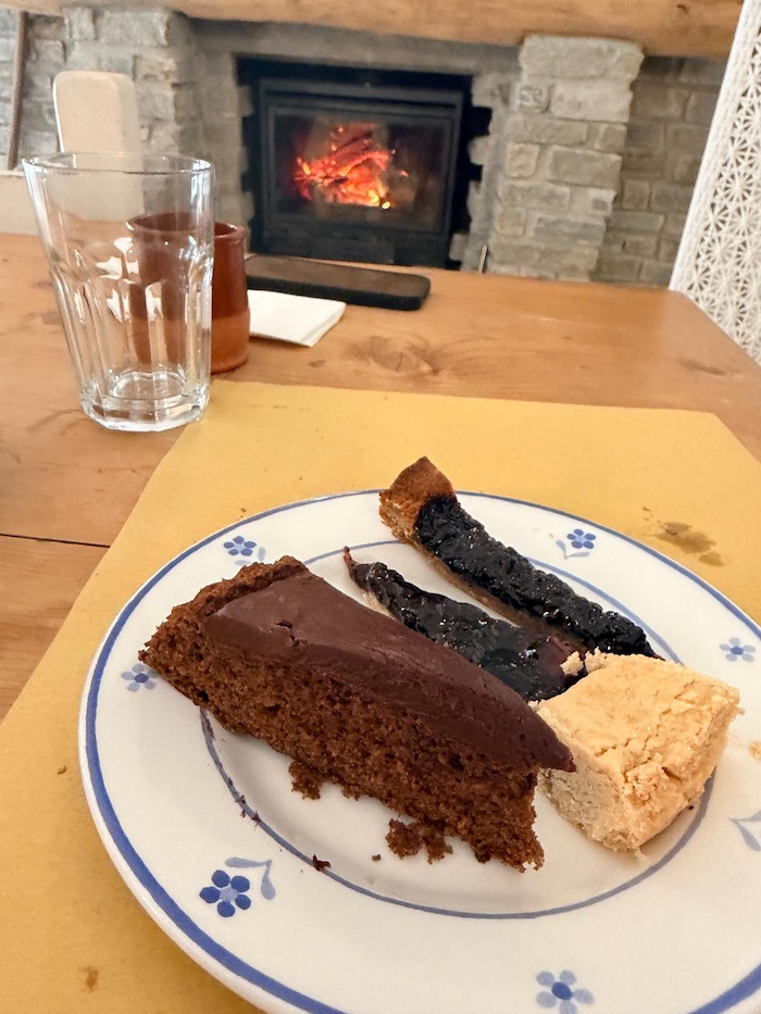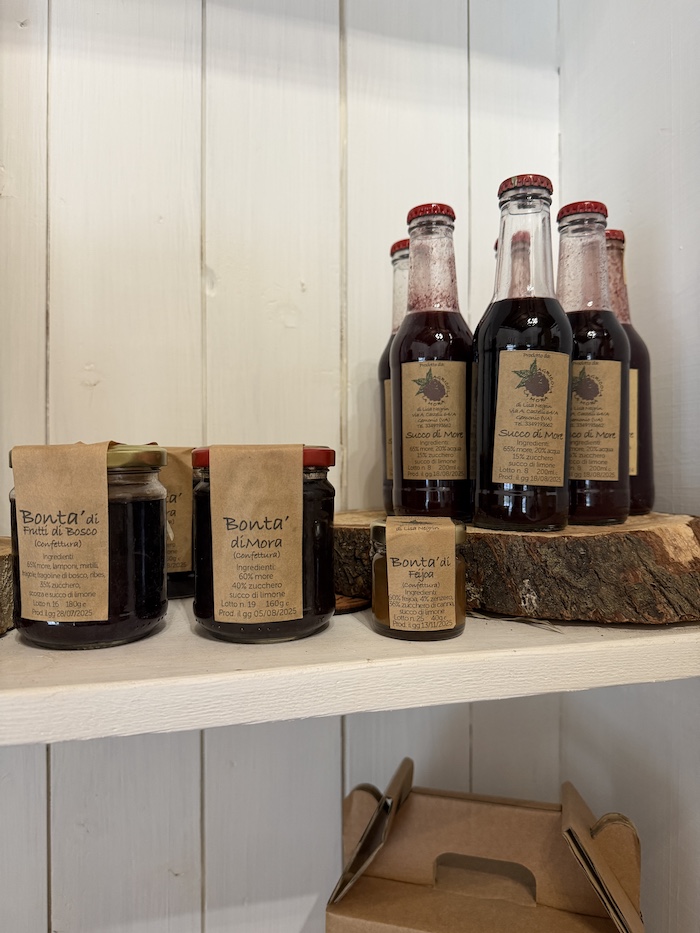 Tra i secondi, il prosciutto di spalla di maiale insaccato dell’Azienda Agricola Chiozzi, cotto in casa e servito con maionese fatta in casa, salsa verde di produzione propria e verdure, conferma la coerenza della proposta. I dolci, preparati con farina di grano tenero biologica e marmellate di more o frutti di bosco realizzate internamente, chiudono il percorso. Sono disponibili anche opzioni vegetariane e vegane, sia tra i primi che tra i secondi piatti.